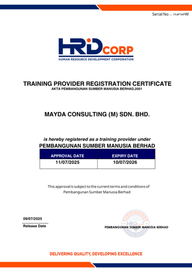At Mayda Consulting (M) Sdn Bhd, we empower managers and organizations to unlock their full potential through transformative learning experiences. Our programs are designed to strengthen leadership capabilities, enhance organizational performance, and drive sustainable growth. With a focus on practical application and long-term impact, we help leaders inspire change, build high-performing teams, and achieve meaningful results.